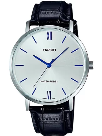 Часы Casio (Касио) практичные часы для стильных мужчин, которые ценят комфорт и практичность. Циферблат в виде штрихов и римских цифр. Стекло минеральное, устойчивое к повреждениям и царапинам. Корпус выполнен из нержавеющей стали. Ремешок из натуральной кожи. Классическая застежка из нержавеющей стали. Водозащита 30WR.