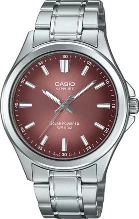 Часы Casio (Касио) практичные часы для стильных мужчин, которые ценят комфорт и практичность. Солнечная подзаряжающаяся батарейка обеспечивает питание часов для работы. Аккумулятор данной модели заряжается от любого источника света. Циферблат с метками в виде штрихов. На стрелки и метки нанесен накапливающий свет флуоресцирующий материал, за счет которого обеспечивается свечение стрелок в темноте. Корпус и браслет выполнен из нержавеющей стали. Сапфировое стекло устойчивое к царапанию. Заводная головка с защитой. Браслет с тройной раскладывающейся застежкой, расстегиваемой одним касанием. Водозащита 50WR.