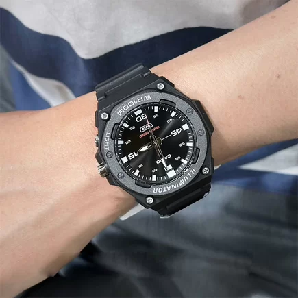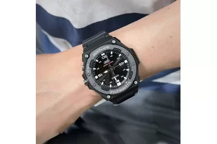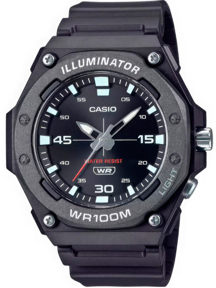Часы Casio (Касио) практичные часы, которые без сомнений порадуют вас своей точностью и качеством. Циферблат выполнен по технологии Sunray (солнечные лучи). На данной модели отображается текущая дата. Метки в виде штрихов. На стрелки и метки нанесен накапливающий свет флуоресцирующий материал, за счет которого обеспечивается свечение стрелок в темноте. Диодная подсветка циферблата. Рифленая заводная головка с защитой. Ремешок из полимерного материала с классической застежкой. Стальная задняя крышка крепится на 4-х винтах. Водозащита 100WR.