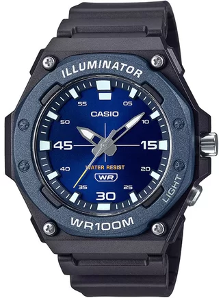 Часы Casio (Касио) практичные часы, которые без сомнений порадуют вас своей точностью и качеством. Циферблат выполнен по технологии Sunray (солнечные лучи). На данной модели отображается текущая дата. Метки в виде штрихов. На стрелки и метки нанесен накапливающий свет флуоресцирующий материал, за счет которого обеспечивается свечение стрелок в темноте. Диодная подсветка циферблата. Рифленая заводная головка с защитой. Ремешок из полимерного материала с классической застежкой. Стальная задняя крышка крепится на 4-х винтах. Водозащита 100WR.
