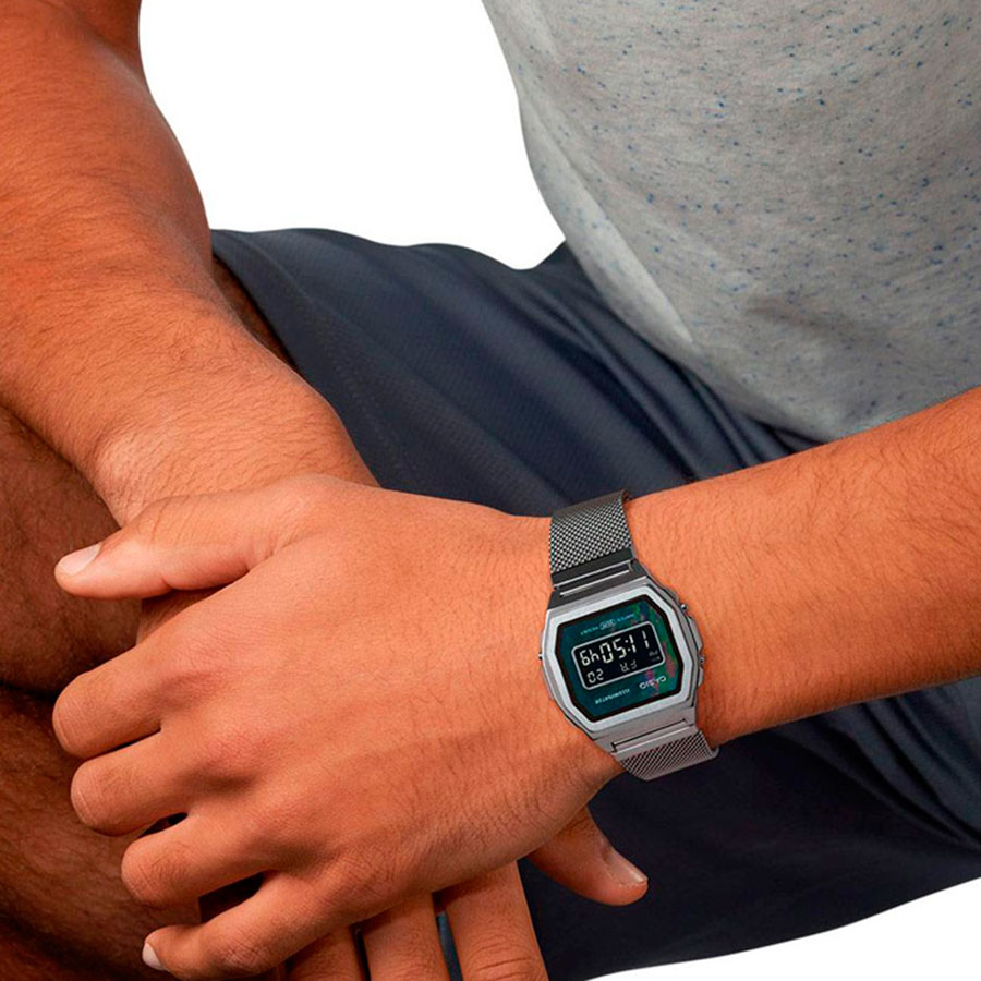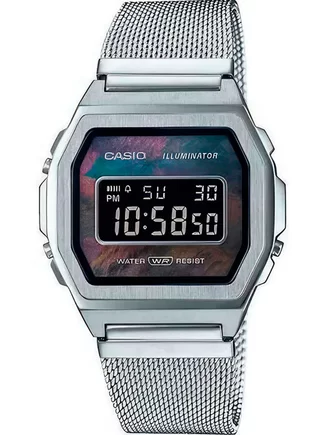 Оригинальные наручные часы Casio(Касио винтаж). Цифровая модель из серии CASIO RETRO в стальном корпусе с перламутровой окантовкой дисплея на браслете, украсят запястье молодежи, которые знают толк в элегантных аксессуарах.