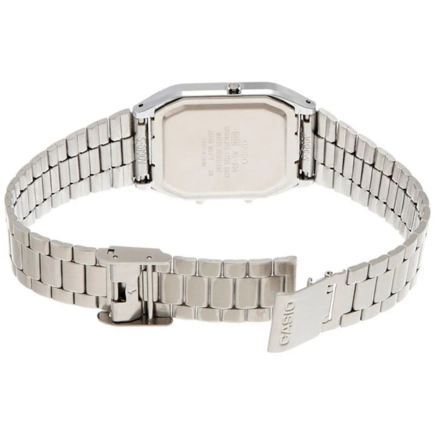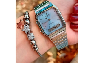 Многофункциональный календарь, отображающий число, день недели и месяц. Пластиковое стекло. Браслет стальной с регулируемой застежкой.