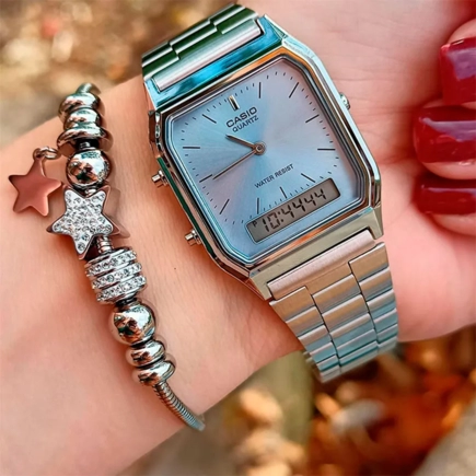 Японские часы Casio (Касио) Collection AQ-230GG -9A из коллекции Casio Illuminator прекрасно подойдут как для мужской, так и для женской руки. Представляют собой компактный и модный аксессуар.Данная модель сочетает в себе стильный дизайн, симметричность деталей и практичность. Аналоговый способ отображения времени. Кварцевый механизм.