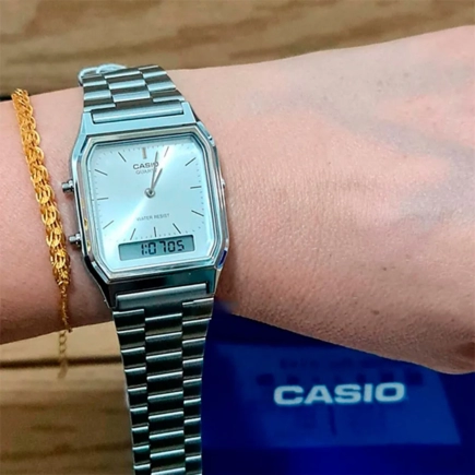 Японские часы Casio (Касио) Collection AQ-230GG -9A из коллекции Casio Illuminator прекрасно подойдут как для мужской, так и для женской руки. Представляют собой компактный и модный аксессуар.Данная модель сочетает в себе стильный дизайн, симметричность деталей и практичность. Аналоговый способ отображения времени. Кварцевый механизм.