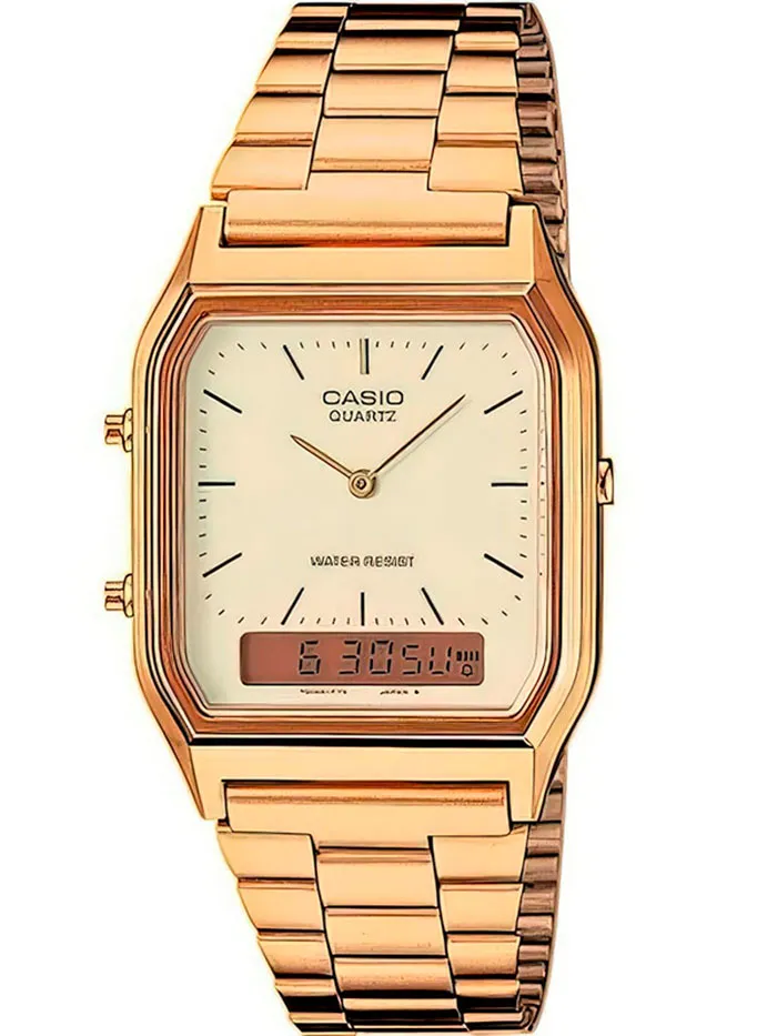 Японские часы Casio (Касио) Collection AQ-230GG -9A из коллекции Casio Illuminator прекрасно подойдут как для мужской, так и для женской руки. Представляют собой компактный и модный аксессуар.Данная модель сочетает в себе стильный дизайн, симметричность деталей и практичность. Аналоговый способ отображения времени. Кварцевый механизм.