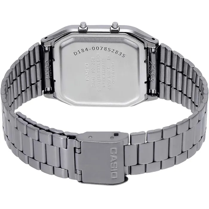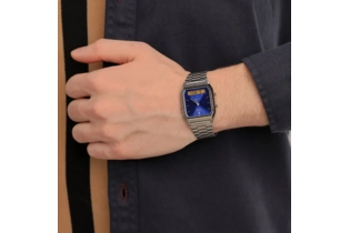 Многофункциональный календарь, отображающий число, день недели и месяц. Пластиковое стекло. Браслет стальной с регулируемой застежкой.