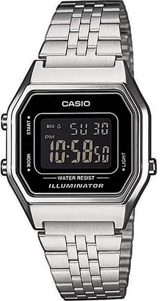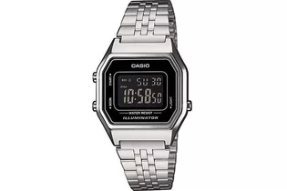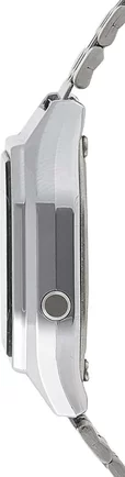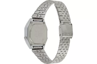 Наручные часы в стиле первых электронных моделей, предназначенные для женщин. Ретро-дизайн. Пластиковый корпус с хромированием и браслет из нерж. стали. Многофункциональный кварцевый механизм с цифровой индикацией и подсветкой.