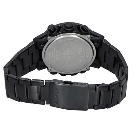 Беспроводная технология Bluetooth® со сверхнизким потреблением энергии для синхронизации со смартфоном. При подключении к смартфону часы корректируют текущее время, позволяют настроить будильник или таймер, а также копируют настройки мирового времени (до 300 городов). Авиарежим. Отображение дней недели на шести языках. Смена отображения даты/месяца. Функции перемещения стрелок, поиска телефона и включения/отключения звука. Включение/выключение звукового сигнала по расписанию. Батарейка рассчитана на 2 года. Стальная задняя крышка крепится на 4-х винтах. Стальной корпус усиленный карбоном. Стальной браслет. На корпус и браслет нанесено стойкое PVD покрытие. Водозащита 100WR подходит для плавания с маской, трубкой и обычного плавания. 5 будильников, ежечасный сигнал, стекло минеральное. Календарь автоматический: число, день недели, месяц (до 2099г)