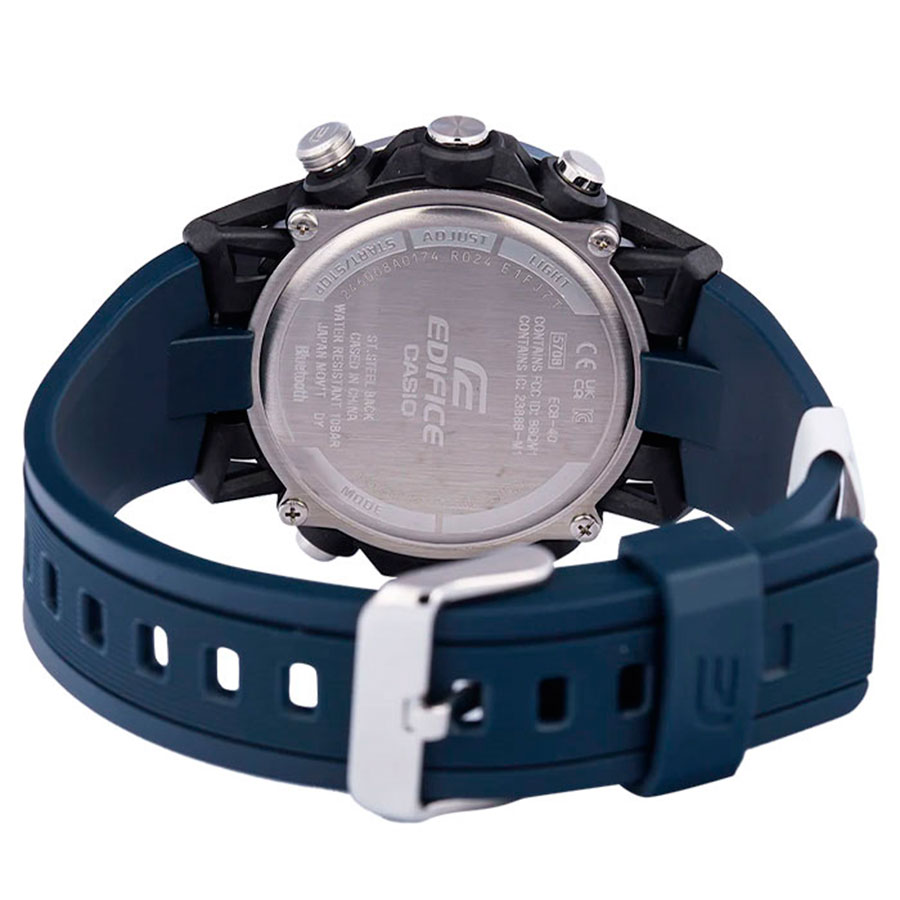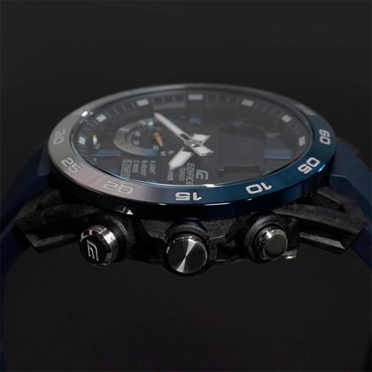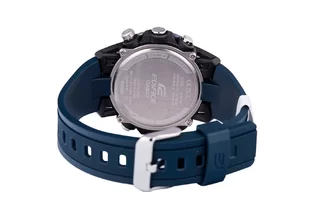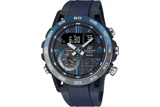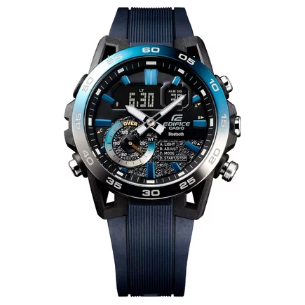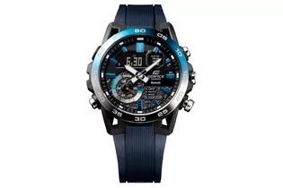 Стильная и функциональная новинка в линейке Casio Edifice (Касио Эдифис) пронизана насквозь спортом и духом скорости. Edifice Sospensione. Мужские часы, дизайн которых вдохновлен подвеской болида Формулы-1. Ушки часов разработаны по схеме четырехрычажной подвески гоночного автомобиля. Двойная подcветка: циферблат и ЖК-дисплеи подсвечиваются светодиодом, благодаря наличию функции задержки, после отпускания кнопки освещение горит еще несколько секунд. При повороте часов в сторону лица, подсветка включается автоматически. Настраиваемое послесвечение 1,5 или 3сек. Цвет подсветки: белый. Необритовое светонакопительное покрытие обеспечивает длительное послесвечение в темноте даже после кратковременного нахождения на свету. 12-ти и 24-х часовой формат времени. Секундомер с двумя точностями показаний: 1/1000с (до 1ч) и 1/10с (после 1ч) и временем измерения 24ч. SPLIT-хронограф. Память на 200 кругов. Таймер обратного отсчета от 1с до 24ч. Мировое время – 38 городов (38 часовых поясов), всемирное координированное время (UTC). Автоматический переход на зимнее и летнее время, возможность включения/отключения данной функции. Переключение между домашним и мировым временем.