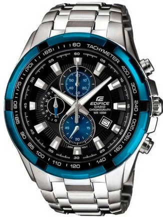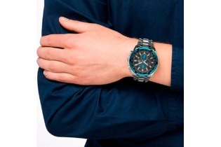 Наручные часы-хронограф Casio Edifice (Касио эдифис) со спортивным характером. Стильный, динамичный дизайн этих часов оценит по достоинству любой поклонник спортивного стиля. Тахиметрическая шкала. Необритовое светонакопительное покрытие обеспечивает длительное послесвечение в темноте даже после кратковременного нахождения на свету. Часы-хронограф с секундомером и тахиметром. Секундомер с точностью показаний 1с и временем измерения 12ч. Циферблат с метками в виде штрихов. Окошко даты находится в положении 4 часа. Заводная головка с защитой. Задняя крышка с винтовым фиксатором. Батарейка рассчитана на 2 года. Водонепроницаемость в соответствии с ISO 2281. Браслет с тройной раскладывающейся застежкой, расстегиваемой одним касанием. Застежка с системой блокировки. Водозащита 100WR, подсветка Neobrite, стекло минеральное.