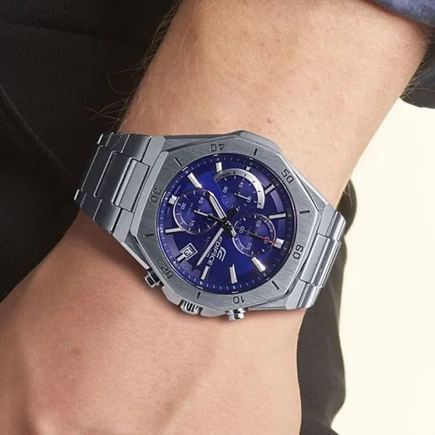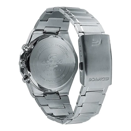 Наручные часы Casio Edifice (Касио эдифис) носят спортивный характер, круглый корпус и стальной браслет. Эти часы для мужчин, которые ценят комфорт и практичность. Необритовое светонакопительное покрытие обеспечивает длительное послесвечение в темноте даже после кратковременного нахождения на свету. Циферблат с метками в виде штрихов. Заводная головка с защитой. Задняя крышка с винтовым фиксатором. Батарея рассчитана на 3 года. Литой браслет с тройной раскладывающейся застежкой, расстегиваемой одним касанием. Предохранительная защелка на браслете препятствует случайному расстегиванию. Стекло сапфировое, водонепроницаемость 100WR.