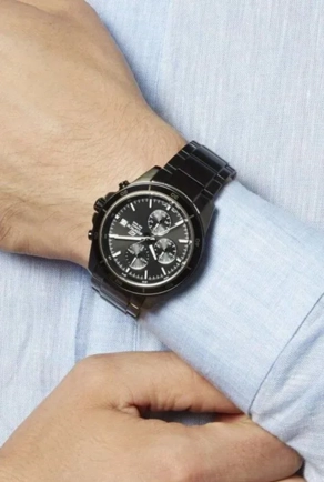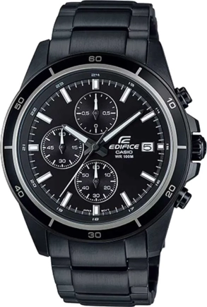 Наручные часы Casio Edifice (Касио эдифис) стильный хронограф по достоинству оценят современные мужчины. Необритовое светонакопительное покрытие обеспечивает длительное послесвечение в темноте даже после кратковременного нахождения на свету. Циферблат с метками в виде штрихов. Часы-хронограф с секундомером точностью 1/10 сек и временем измерения 1ч. Заводная головка с защитой. Задняя крышка с винтовым фиксатором. Батарея рассчитана на 3 года. Стальной браслет с IP покрытием и тройной раскладывающейся застежкой, расстегиваемой одним касанием. Стекло минеральное, водонепроницаемость 100WR.