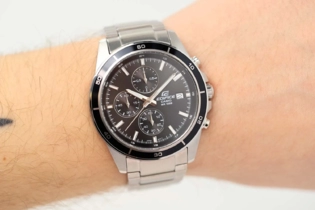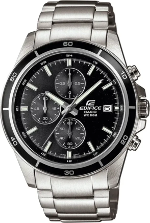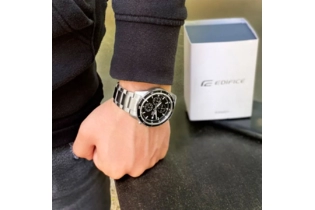 Наручные часы Casio Edifice (Касио эдифис) стильный хронограф по достоинству оценят современные мужчины. Необритовое светонакопительное покрытие обеспечивает длительное послесвечение в темноте даже после кратковременного нахождения на свету. Циферблат с метками в виде штрихов. Часы-хронограф с секундомером точностью 1/10 сек и временем измерения 1ч. Заводная головка с защитой. Задняя крышка с винтовым фиксатором. Батарея рассчитана на 3 года. Стальной браслет с тройной раскладывающейся застежкой, расстегиваемой одним касанием. Стекло минеральное, водонепроницаемость 100WR.