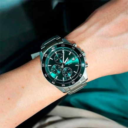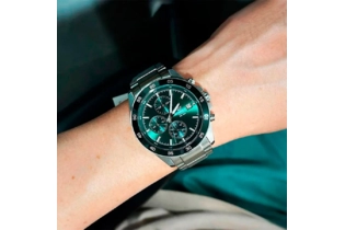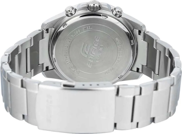 Наручные часы Casio Edifice (Касио эдифис) стильный хронограф по достоинству оценят современные мужчины. Необритовое светонакопительное покрытие обеспечивает длительное послесвечение в темноте даже после кратковременного нахождения на свету. Циферблат с метками в виде штрихов. Часы-хронограф с секундомером точностью 1/10 сек и временем измерения 1ч. Заводная головка с защитой. Задняя крышка с винтовым фиксатором. Батарея рассчитана на 3 года. Стальной браслет с тройной раскладывающейся застежкой, расстегиваемой одним касанием. Стекло минеральное, водонепроницаемость 100WR.