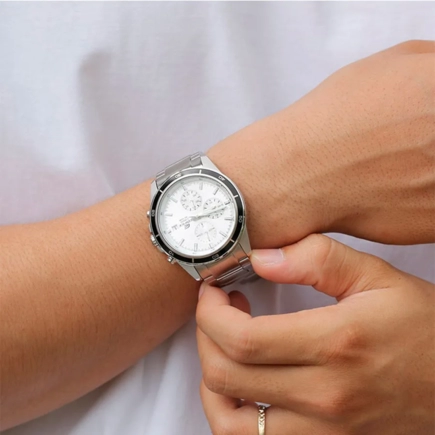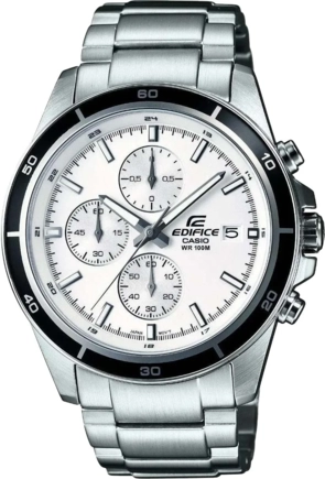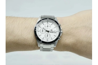 Наручные часы Casio Edifice (Касио эдифис) стильный хронограф по достоинству оценят современные мужчины. Необритовое светонакопительное покрытие обеспечивает длительное послесвечение в темноте даже после кратковременного нахождения на свету. Циферблат с метками в виде штрихов. Часы-хронограф с секундомером точностью 1/10 сек и временем измерения 1ч. Заводная головка с защитой. Задняя крышка с винтовым фиксатором. Батарея рассчитана на 3 года. Стальной браслет с тройной раскладывающейся застежкой, расстегиваемой одним касанием. Стекло минеральное, водонепроницаемость 100WR.