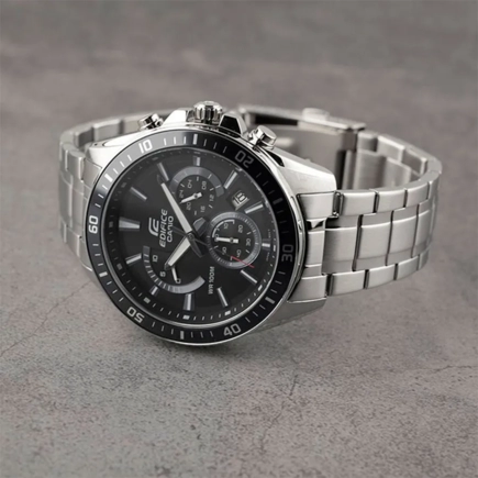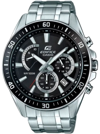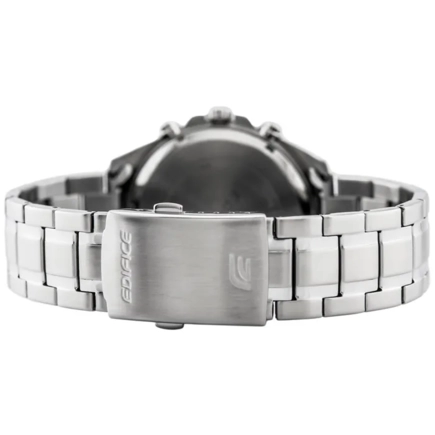 Наручные часы Casio Edifice (Касио эдифис) стильный хронограф по достоинству оценят современные мужчины. Стрелки и метки покрыты люминесцентным напылением (светятся в темноте). Циферблат с метками в виде штрихов. Часы-хронограф с секундомером точностью 1/10 сек и временем измерения 1ч. Заводная головка с защитой. Задняя крышка с винтовым фиксатором. Батарея рассчитана на 3 года. Стальной браслет с тройной раскладывающейся застежкой, расстегиваемой одним касанием. Стекло минеральное, водонепроницаемость 100WR.