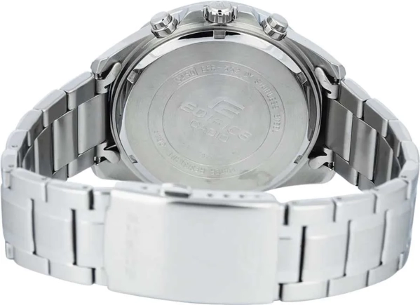 Наручные часы Casio Edifice (Касио эдифис) стильный хронограф по достоинству оценят современные мужчины. Стрелки и метки покрыты люминесцентным напылением (светятся в темноте). Циферблат с метками в виде штрихов. Часы-хронограф с секундомером точностью 1/10 сек и временем измерения 1ч. Заводная головка с защитой. Задняя крышка с винтовым фиксатором. Батарея рассчитана на 3 года. Стальной браслет с тройной раскладывающейся застежкой, расстегиваемой одним касанием. Стекло минеральное, водонепроницаемость 100WR.