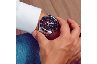 Наручные часы Casio Edifice (Касио эдифайс) стильный хронограф по достоинству оценят современные мужчины. Стрелки и метки покрыты люминесцентным напылением (светятся в темноте). Циферблат с метками в виде штрихов. Часы-хронограф с секундомером точностью 1 сек и временем измерения 30мин. 12-ти и 24-х часовой формат времени. Заводная головка с защитой. Задняя крышка с винтовым фиксатором. Батарея рассчитана на 3 года. Стальной браслет с тройной раскладывающейся застежкой, расстегиваемой одним касанием. Стекло минеральное, водонепроницаемость 100WR.