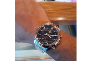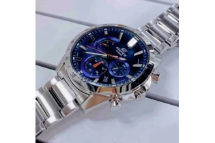 Наручные часы Casio Edifice (Касио эдифис) стильный хронограф по достоинству оценят современные мужчины. Стрелки и метки покрыты люминесцентным напылением (светятся в темноте). Циферблат с метками в виде штрихов. Часы-хронограф с секундомером точностью 1 сек и временем измерения 10мин. Ретроградный указатель минутной стрелки хронографа. Заводная головка с защитой. Задняя крышка с винтовым фиксатором. Батарея рассчитана на 3 года. Стальной браслет с тройной раскладывающейся застежкой, расстегиваемой одним касанием. Стекло минеральное, водонепроницаемость 100WR.
