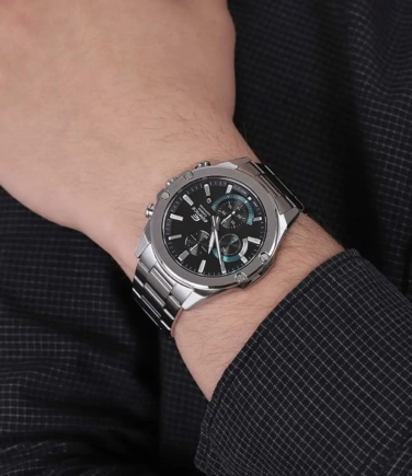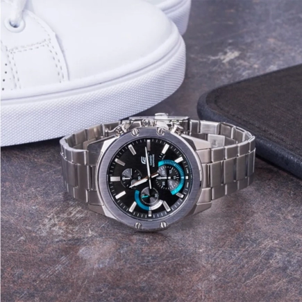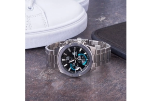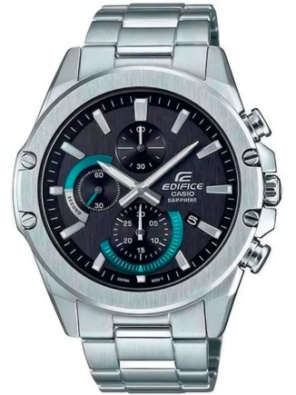 Наручные часы Casio Edifice (Касио Эдифис) стильный хронограф по достоинству оценят современные мужчины. Особенность модели — невероятно тонкий корпус толщиной всего в 9.5 мм. Стрелки и метки покрыты люминесцентным напылением (светятся в темноте). Секундомер с точностью показаний 1с и временем измерения 30мин. Циферблат с метками в виде штрихов. На данной модели отображается дата. Заводная головка с защитой. Задняя крышка с винтовым фиксатором. Стальной браслет с тройной раскладывающейся застежкой, расстегиваемой одним касанием. Сапфировое стекло устойчивое к царапинам. Водонепроницаемость 100WR.