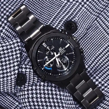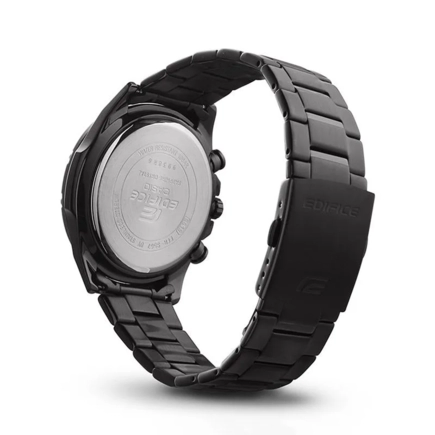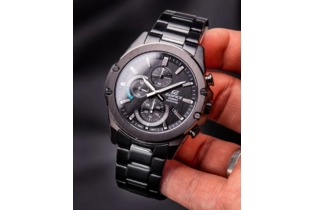 Наручные часы Casio Edifice (Касио Эдифис) стильный хронограф по достоинству оценят современные мужчины. Особенность модели — невероятно тонкий корпус толщиной всего в 9.5 мм. Стрелки и метки покрыты люминесцентным напылением (светятся в темноте). Секундомер с точностью показаний 1с и временем измерения 30мин. Циферблат с метками в виде штрихов. На данной модели отображается дата. Заводная головка с защитой. Задняя крышка с винтовым фиксатором. Корпус и браслет стальной с IP покрытием. Стальной браслет с тройной раскладывающейся застежкой, расстегиваемой одним касанием. Сапфировое стекло устойчивое к царапинам. Водонепроницаемость 100WR.