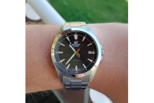 Наручные часы Casio Edifice (Касио Эдифис) по достоинству оценят современные мужчины. Будут отлично смотреться как с деловым костюмом, так и с повседневной одеждой. Стрелки и метки покрыты люминесцентным напылением (светятся в темноте). Циферблат с метками в виде штрихов. На данной модели отображается дата. Заводная головка с защитой. Задняя крышка с винтовым фиксатором. Браслет с тройной раскладывающейся застежкой, расстегиваемой одним касанием. Стекло минеральное, устойчивое к повреждениям и царапинам. Водонепроницаемость 100WR.