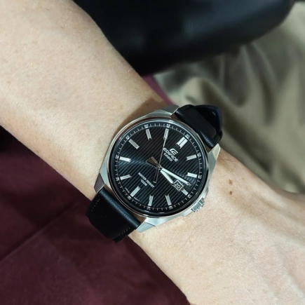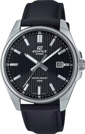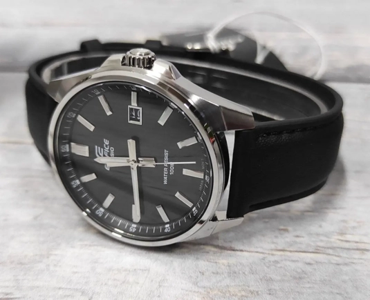Наручные часы Casio Edifice (Касио Эдифис) по достоинству оценят современные мужчины. Будут отлично смотреться как с деловым костюмом, так и с повседневной одеждой. Стрелки и метки покрыты люминесцентным напылением (светятся в темноте). Циферблат с метками в виде штрихов. На данной модели отображается дата. Заводная головка с защитой. Задняя крышка с винтовым фиксатором. Ремешок из высококачественной натуральной кожи сочетает в себе долговечность, стиль и максимальный комфорт. Стекло минеральное, устойчивое к повреждениям и царапинам. Водонепроницаемость 100WR.