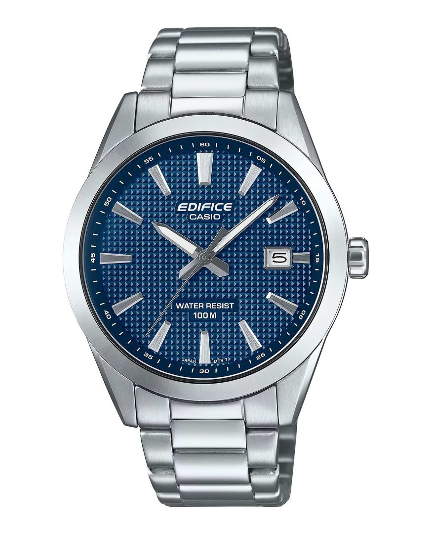 Наручные часы Casio Edifice (Касио Эдифис) по достоинству оценят современные мужчины. Будут отлично смотреться как с деловым костюмом, так и с повседневной одеждой. Стрелки и метки покрыты люминесцентным напылением (светятся в темноте). Циферблат с метками в виде штрихов. На данной модели отображается дата. Заводная головка с защитой. Задняя крышка с винтовым фиксатором. Браслет с тройной раскладывающейся застежкой, расстегиваемой одним касанием. Стекло минеральное, устойчивое к повреждениям и царапинам. Водонепроницаемость 100WR.
