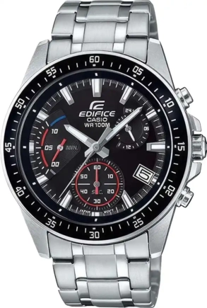 Наручные часы Casio Edifice (Касио Эдифис) по достоинству оценят современные мужчины. Часы-хронограф с секундомером с точностью показаний 1с и временем измерения 10мин. Ретроградный указатель минутной стрелки хронографа. 12-ти и 24-х часовой формат времени. Стрелки и метки покрыты люминесцентным напылением (светятся в темноте). Циферблат с метками в виде штрихов. На данной модели отображается дата. На корпус частично нанесено стойкое PVD покрытие. Заводная головка с защитой. Задняя крышка с винтовым фиксатором. Браслет с тройной раскладывающейся застежкой, расстегиваемой одним касанием. Особая безопасная предохранительная защелка, которая помогает предотвратить случайное расстегивание браслета. Стекло минеральное, устойчивое к повреждениям и царапинам. Водонепроницаемость 100WR.