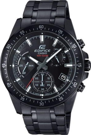 Наручные часы Casio Edifice (Касио Эдифис) по достоинству оценят современные мужчины. Часы-хронограф с секундомером с точностью показаний 1с и временем измерения 10мин. Ретроградный указатель минутной стрелки хронографа. 12-ти и 24-х часовой формат времени. Стрелки и метки покрыты люминесцентным напылением (светятся в темноте). Циферблат с метками в виде штрихов. На данной модели отображается дата. На корпус частично нанесено стойкое PVD покрытие. Заводная головка с защитой. Задняя крышка с винтовым фиксатором. Браслет с тройной раскладывающейся застежкой, расстегиваемой одним касанием. Особая безопасная предохранительная защелка, которая помогает предотвратить случайное расстегивание браслета. Стекло минеральное, устойчивое к повреждениям и царапинам. Водонепроницаемость 100WR.
