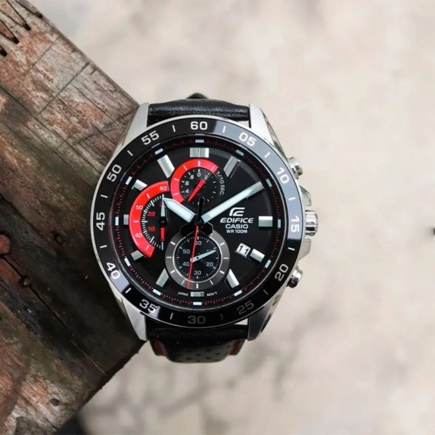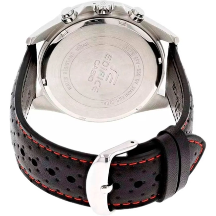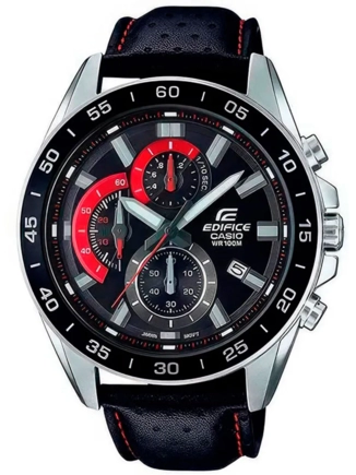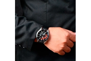 Наручные часы Casio Edifice (Касио Эдифис) по достоинству оценят современные мужчины. На данной модели отображается дата. Секундомер может отсчитывать до 59 минут 59 секунд с точностью 1/10 секунды. Стрелки и метки покрыты люминесцентным напылением (светятся в темноте). На корпус частично нанесено стойкое PVD покрытие. Ремешок из натуральной кожи. Классическая застежка из нержавеющей стали. Стекло минеральное, устойчивое к повреждениям и царапинам. Заводная головка с защитой. Завинчивающаяся задняя крышка. Водонепроницаемость 100WR.