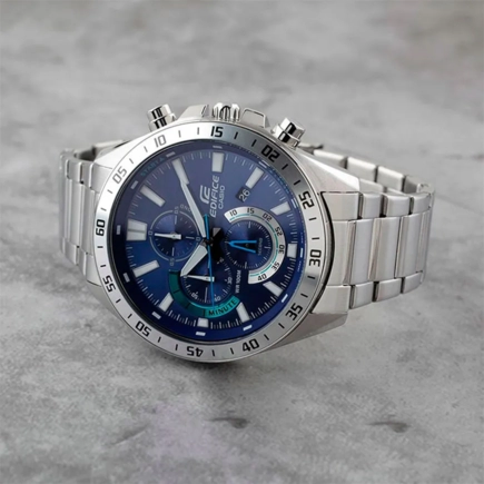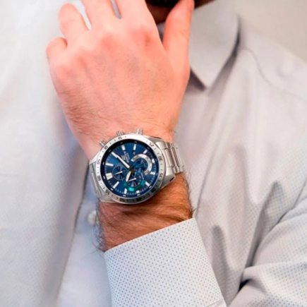 Наручные часы Casio Edifice (Касио Эдифис) по достоинству оценят современные мужчины. Часы-хронограф с секундомером с точностью показаний 1/10с и временем измерения 1ч. Циферблат с метками в виде штрихов. Необритовое светонакопительное покрытие обеспечивает длительное послесвечение в темноте даже после кратковременного нахождения на свету. Окошко даты находится в положении 4 часа. Задняя крышка с винтовым фиксатором. Стекло минеральное, устойчивое к повреждениям и царапинам. Тройная раскладывающаяся застежка, расстегиваемая одним касанием. Предохранительная защелка на браслете препятствует случайному расстегиванию.