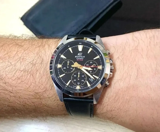 Наручные часы Casio Edifice (Касио Эдифис) по достоинству оценят современные мужчины. Часы-хронограф секундомером с точностью показаний 1с и временем измерения 30мин. 12-ти и 24-х часовой формат времени. Циферблат с метками в виде штрихов. Необритовое светонакопительное покрытие обеспечивает длительное послесвечение в темноте даже после кратковременного нахождения на свету. Окошко даты находится между метками 4 и 5 часов. Задняя крышка с винтовым фиксатором. Стекло минеральное, устойчивое к повреждениям и царапинам. Ремешок из натуральной кожи. Классическая застежка из нержавеющей стали.