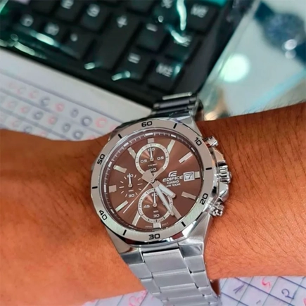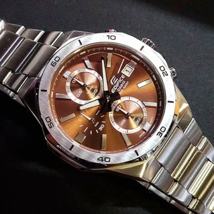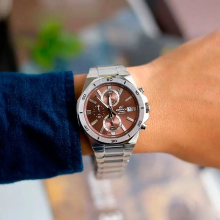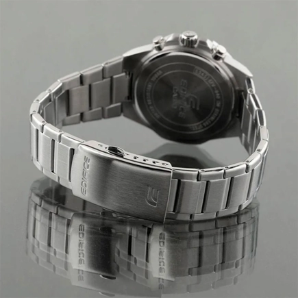 Наручные часы Casio Edifice (Касио Эдифис) по достоинству оценят современные мужчины. Часы-хронограф с секундомером с точностью показаний 1/10с и временем измерения 1ч. Необритовое светонакопительное покрытие обеспечивает длительное послесвечение в темноте даже после кратковременного нахождения на свету. Циферблат выполнен по технологии Sunray (солнечные лучи). Метки в виде штрихов. Окошко даты находится в положении 3 часа. Заводная головка с защитой. Стекло минеральное, устойчивое к повреждениям и царапинам. Браслет с тройной раскладывающейся застежкой, расстегиваемой одним касанием. Предохранительная защелка на браслете препятствует случайному расстегиванию.