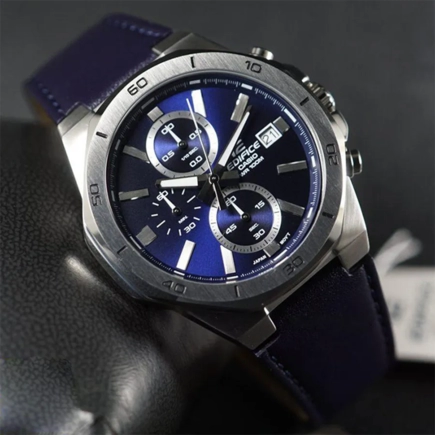 Наручные часы Casio Edifice (Касио Эдифис) по достоинству оценят современные мужчины. Часы-хронограф с секундомером с точностью показаний 1/10с и временем измерения 1ч. Необритовое светонакопительное покрытие обеспечивает длительное послесвечение в темноте даже после кратковременного нахождения на свету. Циферблат выполнен по технологии Sunray (солнечные лучи). Метки в виде штрихов. Окошко даты находится в положении 3 часа. Заводная головка с защитой. Ремешок из натуральной кожи. Классическая застежка из нержавеющей стали.