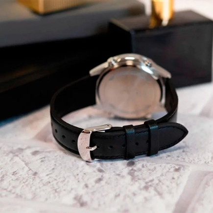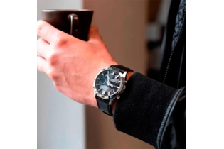 Стекло минеральное, устойчивое к повреждениям и царапинам. Ремешок из натуральной кожи. Классическая застежка из нержавеющей стали.