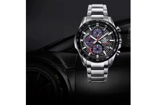 Часы, минуты, секунды. Индикация даты. Секундомер может отсчитывать до 29 минут 59 секунд с шагом 1 сек. Циферблат с часовыми индексами в виде штрихов. Стрелки и метки с люминесцентным покрытием (светятся в темноте). Круглый корпус выполнен из нержавеющей стали с частичным IP покрытием. Заводная головка с защитой. Браслет выполнен из нержавеющей стали. Раскладывающаяся застежка, расстегиваемая одним касанием. Прочное минеральное стекло устойчивое к мелким механическим повреждениям. Завинчивающаяся задняя крышка.