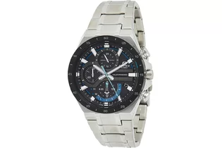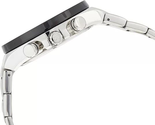 Часы, минуты, секунды. Индикация даты. Секундомер. Циферблат с часовыми индексами в виде штрихов. Стрелки и метки с люминесцентным покрытием (светятся в темноте). Круглый корпус выполнен из нержавеющей стали с частичным IP покрытием. Заводная головка с защитой. Браслет выполнен из нержавеющей стали. Раскладывающаяся застежка, расстегиваемая одним касанием. Прочное минеральное стекло устойчивое к мелким механическим повреждениям. Завинчивающаяся задняя крышка.