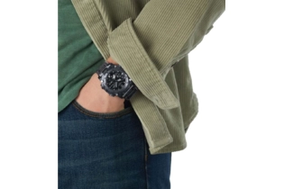 Противоударный пластиковый корпус с карбоновыми волокнами более прочный и в то же время более легкий. Этот же материал защищает внутренний модуль от повреждений и деформаций при ударах. Улучшена ударопрочность конструкции кнопок, что устраняет необходимость во внешних защитных накладках. Многокомпонентный циферблат состоит из цифровых окошек указателей числа и дня недели, а также индикатора режима работы часов, который расположен в позиции 9 часов и выполнен в виде пропеллера.