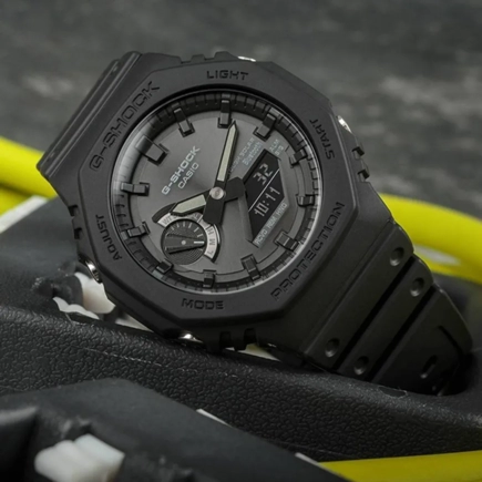Структура Carbon Core Guard. Противоударный пластиковый корпус с карбоновыми волокнами более прочный и, в то же время, более легкий. Этот же материал защищает внутренний модуль от повреждений и деформаций при ударах. Двойная подcветка: циферблат и ЖК-дисплеи подсвечиваются светодиодом, благодаря наличию функции задержки, после отпускания кнопки освещение горит еще несколько секунд. Настраиваемое послесвечение 1,5 или 3сек. Цвет подсветки: белый. Необритовое светонакопительное покрытие обеспечивает длительное послесвечение в темноте даже после кратковременного нахождения на свету.