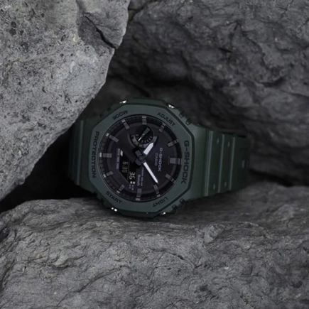 Структура Carbon Core Guard. Противоударный пластиковый корпус с карбоновыми волокнами более прочный и, в то же время, более легкий. Этот же материал защищает внутренний модуль от повреждений и деформаций при ударах. Двойная подcветка: циферблат и ЖК-дисплеи подсвечиваются светодиодом, благодаря наличию функции задержки, после отпускания кнопки освещение горит еще несколько секунд. Настраиваемое послесвечение 1,5 или 3сек. Цвет подсветки: белый. Необритовое светонакопительное покрытие обеспечивает длительное послесвечение в темноте даже после кратковременного нахождения на свету.