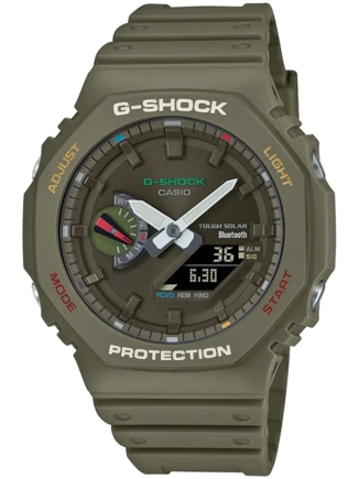Структура Carbon Core Guard. Противоударный пластиковый корпус с карбоновыми волокнами более прочный и, в то же время, более легкий. Этот же материал защищает внутренний модуль от повреждений и деформаций при ударах. Двойная подcветка: циферблат и ЖК-дисплеи подсвечиваются светодиодом, благодаря наличию функции задержки, после отпускания кнопки освещение горит еще несколько секунд. Настраиваемое послесвечение 1,5 или 3сек. Цвет подсветки: белый. Необритовое светонакопительное покрытие обеспечивает длительное послесвечение в темноте даже после кратковременного нахождения на свету.