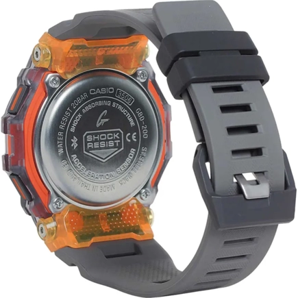 Часы с цифровой индикацией времени, функцией шагомера и технологией Bluetooth® Smart. С помощью Bluetooth® вы можете подключить часы к смартфону и с помощью приложения G-SHOCK Move® получить доступ к полезным функциям. Часы автоматически связываются с телефоном через Bluetooth® и проверяют точность времени 4 раза в сутки. Просмотр количества шагов за 24 часа, интенсивность упражнений и физических нагрузок. Просмотр еженедельного количества шагов и числа сожженных калорий. Просмотр информации секундомера о времени прохождения кругов или промежуточных результатах (до 100 записей).