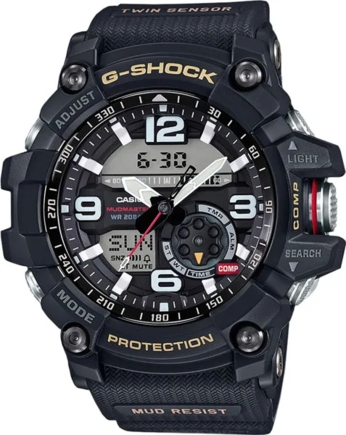 Мужские японские часы Casio G-Shock (Касио Джи-Шок) ударопрочные часы из премиальной серии MASTER OF G MUDMASTER имеют все преимущества G-Shock. GG-1000 – доступная версия топовой модели знаменитых Мадмастеров. Японский многофункциональный механизм, технология Twin Sensor с компасом и термометром.