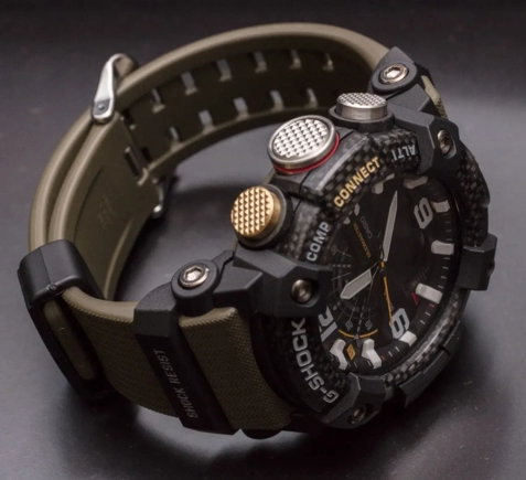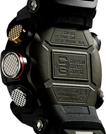 Часы Master Of G Mudmaster спроектированы и разработаны специально для работы в суровых условиях. Индикатор низкого заряда батареи. Противоударный корпус с технологией Carbon Core Guard, которая защищает механизм от ударов и вибрации. Защита от попадания внутрь пыли и грязи. Электролюминесцентная подсветка освещает весь циферблат. Функция парный иллюминатор обеспечивает подсветку не только аналогового циферблата, но и цифрового дисплея. Цвет подсветки: белый. Необритовое светонакопительное покрытие обеспечивает длительное послесвечение в темноте даже после кратковременного нахождения на свету.