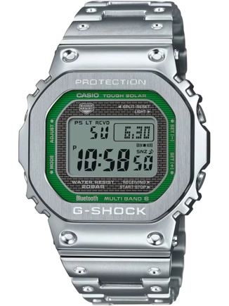 Внешний стальной корпус отполирован и выглядит хромированным, а на безеле сохранена стальная текстура. Задняя крышка черная и защищена сверх-прочным DLC-покрытием. Внутри, гасящий любые удары, слой из материала Alpha Gel® и металлическая капсула с механизмом часов. Благодаря такой структуре инженеры Casio достигли абсолютной ударопрочности, несмотря на использование в модели металла, вместо привычного полимера.