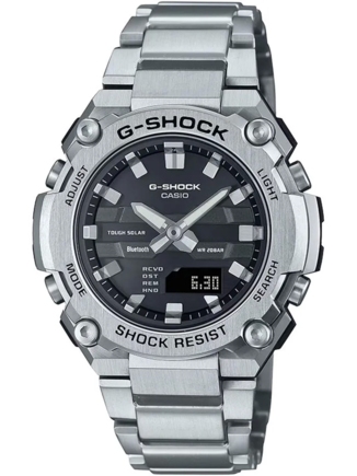 G-Shock с модулем Bluetooth Smart. Аккумулятор данной модели заряжается от любого источника света. Питание от солнечной энергии Tough Solar - солнечные батарейки большой мощности, индикатор заряда батареи. Время работы аккумулятора без подзарядки приблизительно 7 месяцев, при включенной функции сохранения энергии приблизительно 18 месяцев. Примерный срок службы аккумулятора — 10 лет. Имеется режим энергосбережение (дисплей гаснет для экономии энергии, когда часы остаются в темноте) и индикатор уровня заряда батареи.