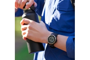 Корпус из пластика и нержавеющей стали. Ремешок с классической застежкой. Минеральное стекло. Водонепроницаемость 100WR идеально подходит для плавания с маской и трубкой.