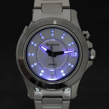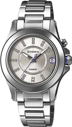 Женские японские наручные часы Casio Sheen (Касио шин) – это стильный аксессуар, который дополнит Ваш образ в любой ситуации.Оригинальный дизайн. Циферблат украшен кристаллами Swarovski. Кварцевый механизм с высокой точностью +/- 20 сек в месяц. Отображение времени в 12 часовом формате. Дисплей даты. Прочное, устойчивое к царапинам, сапфировое стекло обеспечит защиту часов от повреждений. Не снимая часов, Вы можете принимать душ или мыться в ванне. Корпус часов сделан из нержавеющей стали с высокими антикоррозийными свойствами. Браслет стальной. Раскладывающаяся застежка браслета с тройным сгибом, расстегивается одним касанием. Надежная защита браслета от случайного расстегивания. Водонепроницаемость 50WR.