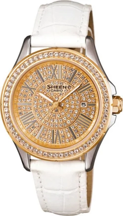 Японские часы Casio Sheen (Касио шин), кварцевый механизм с высокой точностью. Циферблат украшен кристаллом Swarovski. На корпус нанесено стойкое PVD покрытие. Сапфировое стекло устойчивое к появлению царапин, обладающее высокой прозрачностью. Водозащита 50WR, позволит защитить корпус от случайных брызг или капель дождя. Корпуск из высококачественной стали. Кожаный ремешок с классической застежкой.